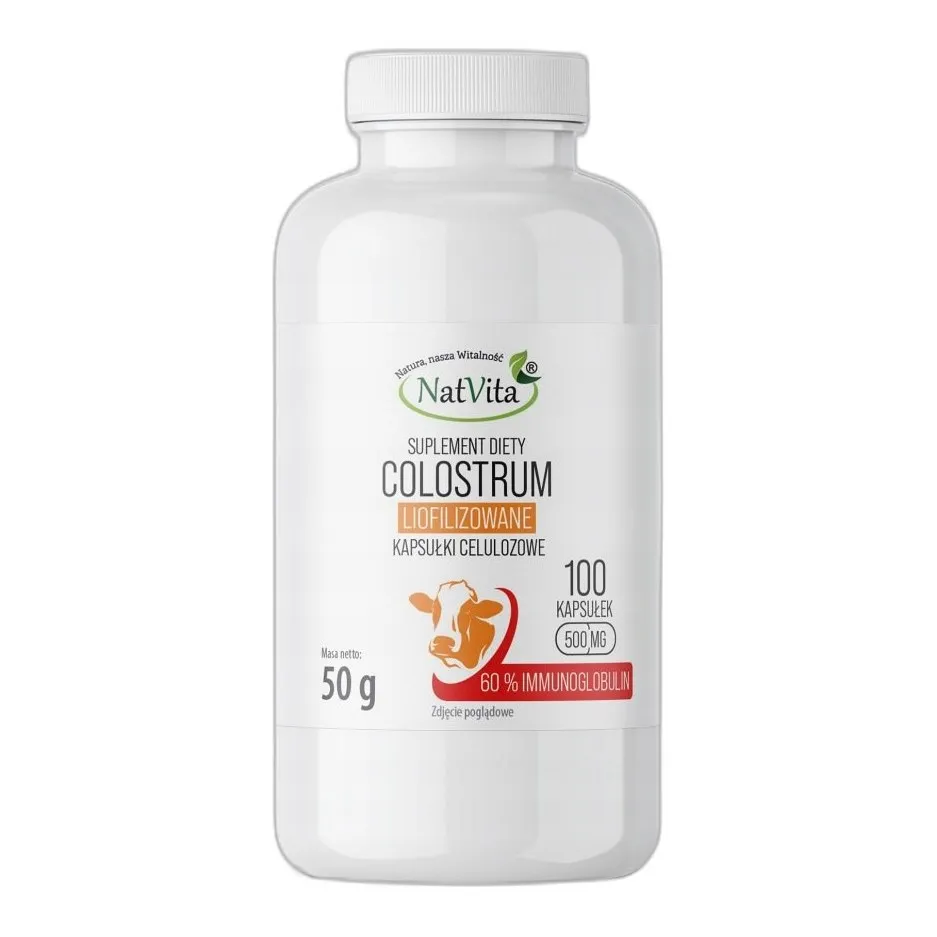 Colostrum IgG Odporność Ochrona kapsułki 500mg 100 kapsułek NatVita 60% — do celów edukacyjnych i badawczych