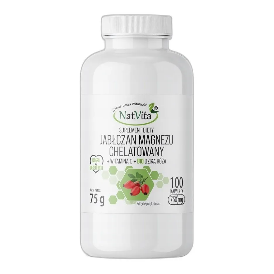 Jabłczan Magnezu + Witamina C kapsułki Chelat Serce Zmęczenie Skurcze 750mg