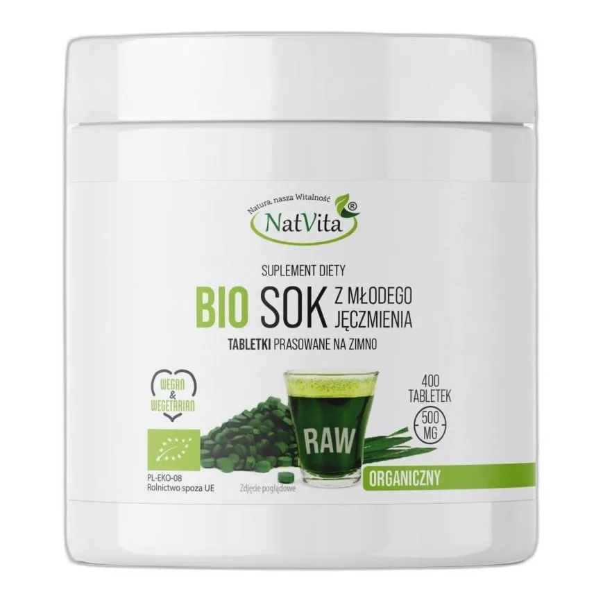 Zastosowania Sok z Młodego Jęczmienia BIO Tabletki Eko Witaminy 400 tabl. NatVita 500mg