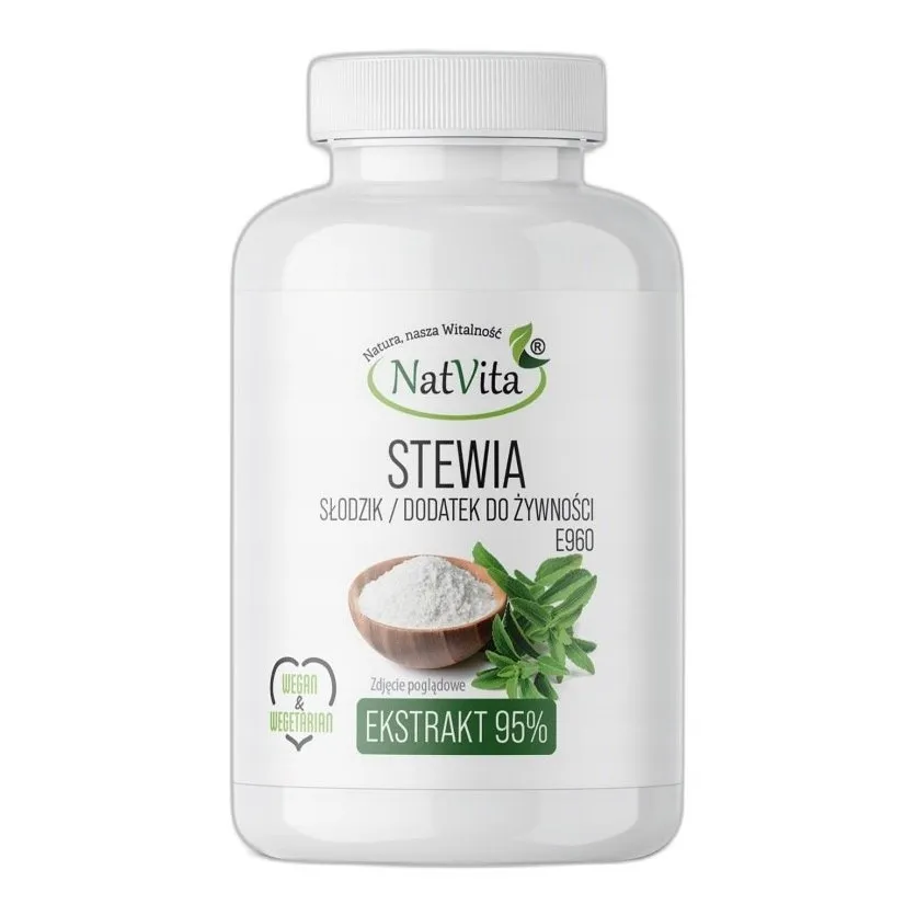 Zastosowania Stewia Ekstrakt Wysokiej czystości 95% Roślinny Zamiennik Cukru Słodzik 300g NatVita